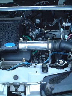 アルミサスションパイプを装着して吸気音もルックスもレーシーに!レゾネーターには穴が開いているために、ラム圧が逃げてしまいます。 アルミサクションパイプの装着でラムAIRの効果が上がります。